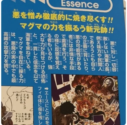 Buna göre One Piece Vivre Card Edition Vol. 3: “Staj seviyesi ve Lava’yı özgürce manipüle etme yeteneği ile Akainu şeytan meyveleri arasında en güçlü saldırıya sahiptir.”