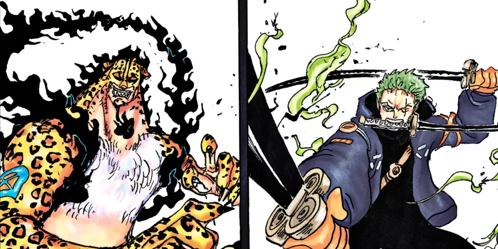 - Zoro hala Lucci ile savaşıyor, bir sayfada çatışmakta ve konuşuyor.