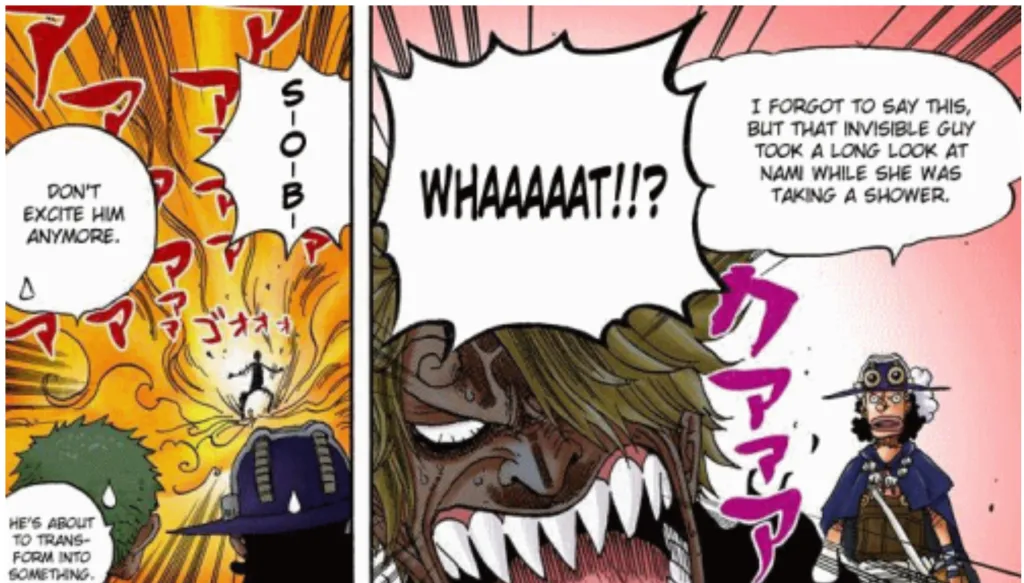 Thriller Bark'ta geri döndü, Zoro, Sanji'nin öfkelendiğini söyledi, bir şeye dönüşebilirdi. Kraliçe'ye karşı Sanji yangınının tutkusundan geldiğini söylüyor, böylece alevleri hala daha fazla yükselebilir (ve hepimiz Sanji’nin tutkusunun eşsiz olduğunu biliyoruz).