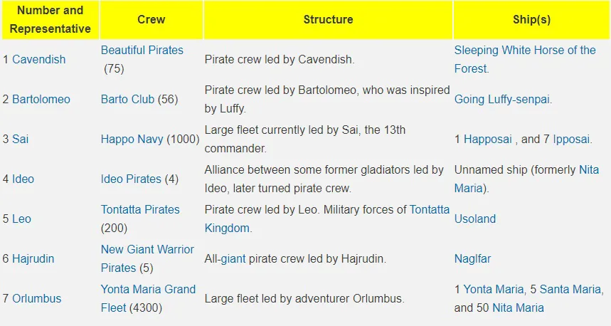 The The The The The The The TheStraw Hat Grand FleetMonkey D. Luffy ve Straw Hat Korsanları altında hizmet edecek yedi korsan mürettebatı tarafından oluşturulan bir filodur.